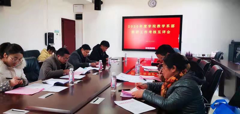 会上,各教学系部负责人逐一介绍了本系部2020年度在科研工作中取得的成绩,并对照《2020年度学院教学系部科研工作定量考核标准》进行了自评,详细阐述自评得分情况及相关佐证材料。科研处、教务处负责人对课题项目、论文等佐证材料进行确认。随后,各系部之间进行了相互考核。