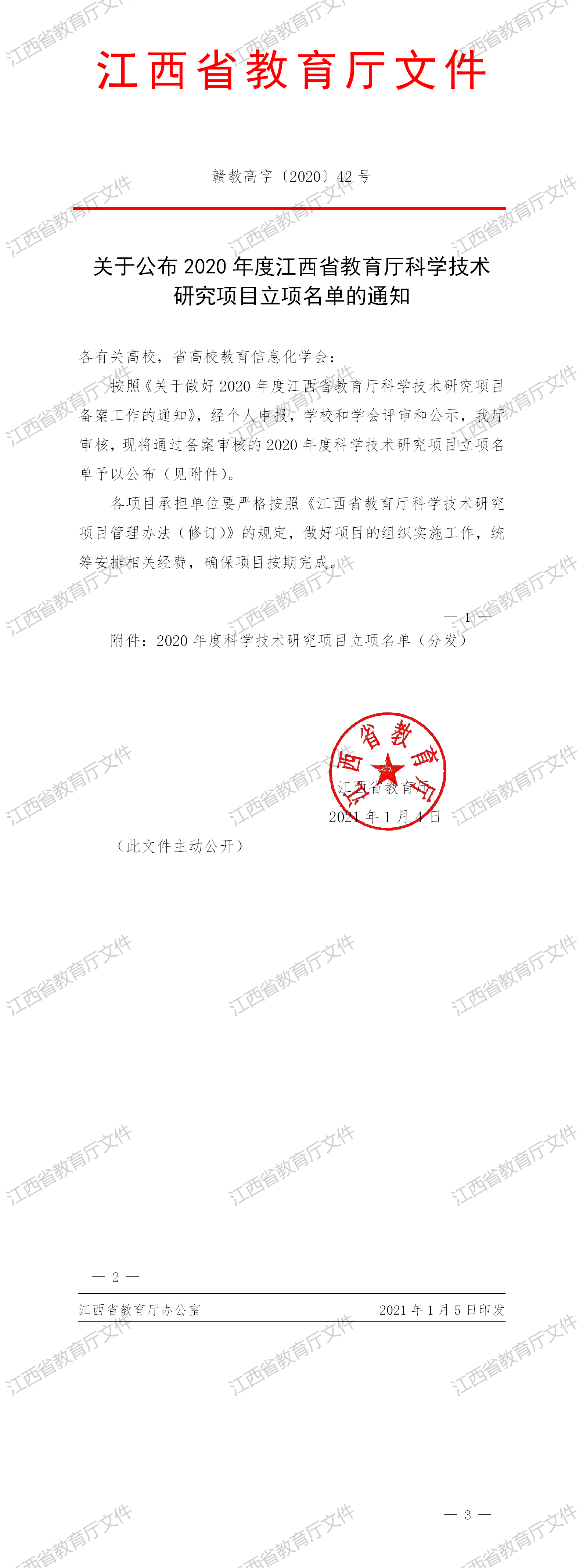 近日,从省教育厅《关于公布2020年度江西省教育厅科学技术研究项目立项名单的通知》(赣教高字〔2020〕42号)文件获悉,我院共有8项2020年度江西省教育厅科学技术研究项目获准立项。